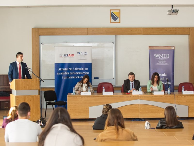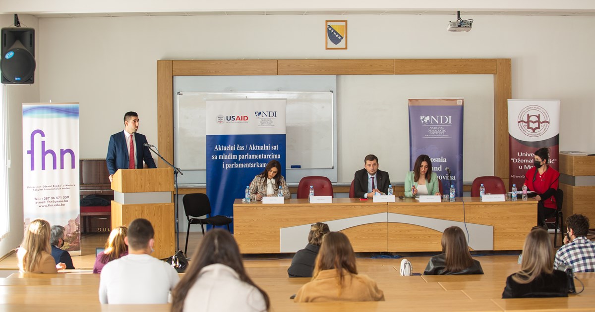 The National Democratic Institute (NDI) and the Dzemal Bijedic University of Mostar organized the Current Hour / Hour with young parliamentarians on November 11, 2021. in the period from 12:00 to 13:30 in the amphitheater of the Faculty of Humanities, Dzemal Bijedic University of Mostar.
