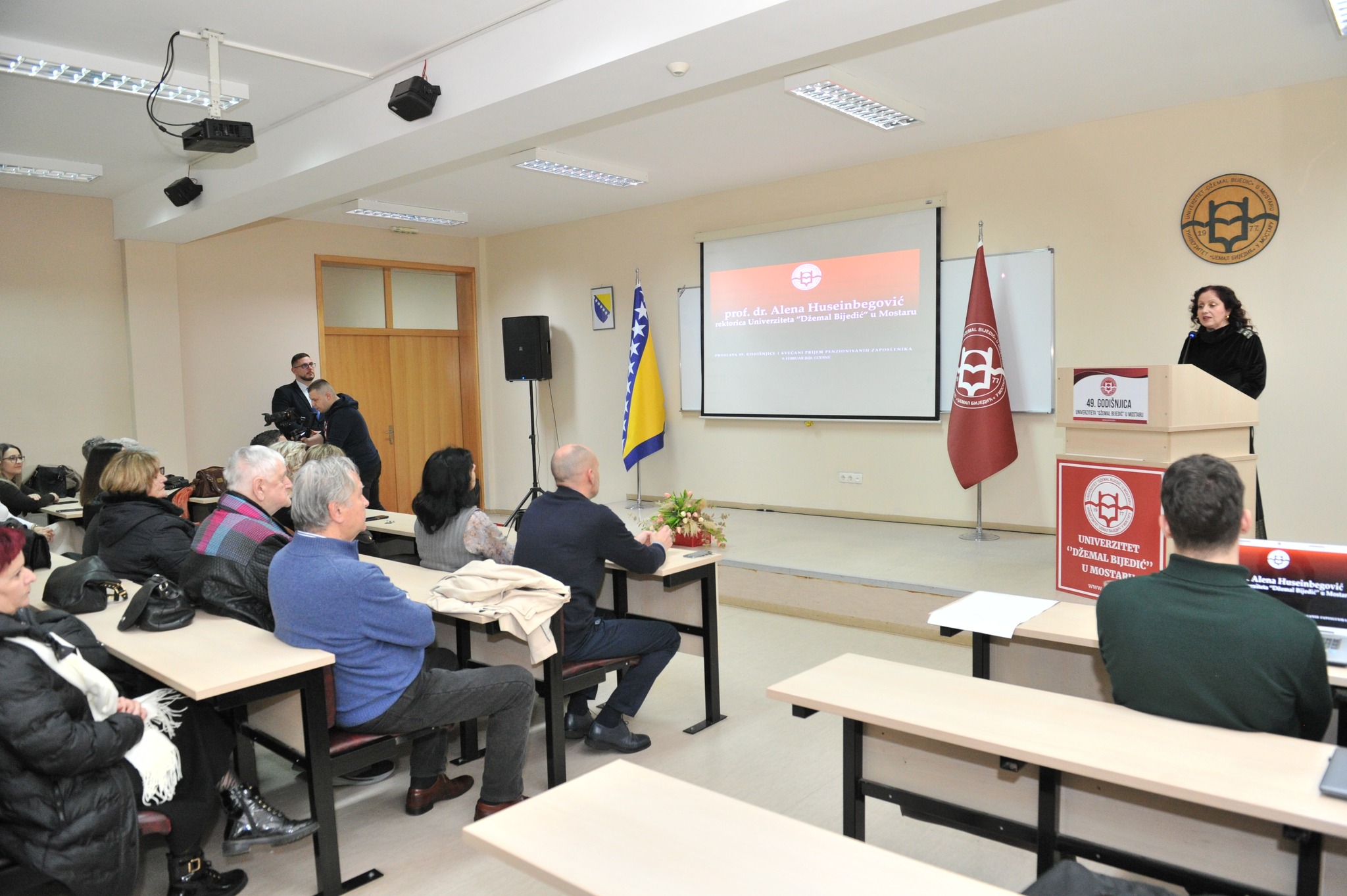 During the program, the University management laid flowers at the bust of Džemal Bijedić and at the memorial to Mirsad Hujdur Hujka and his fellow soldiers. The University then hosted a joint luncheon and social gathering for the retired employees.
