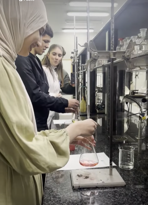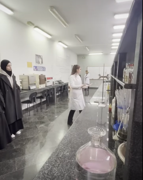 Through practical exercises, the students learned about the titration process and the fundamentals of volumetric analysis. They concluded the visit by measuring the pH value of a solution and performing precise mass measurements using an analytical balance.