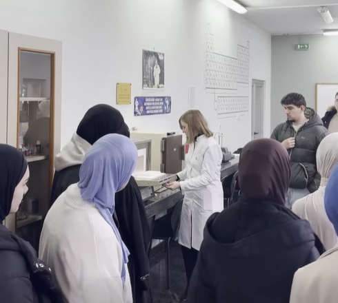 Senior Teaching Assistant Dzenita Alibegic and Teaching Assistant Chiara Marino Tanovic led the visit, introducing the students to the fundamentals of laboratory work through both theoretical instruction and practical training.