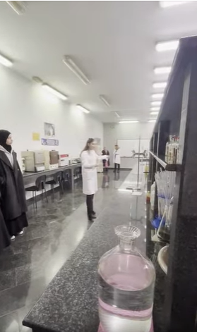At the beginning of the visit, the assistants introduced the students to laboratory safety rules, emphasizing the importance of responsible conduct and demonstrating the proper use of protective equipment and laboratory protocols. They also presented basic laboratory glassware and explained its purpose.