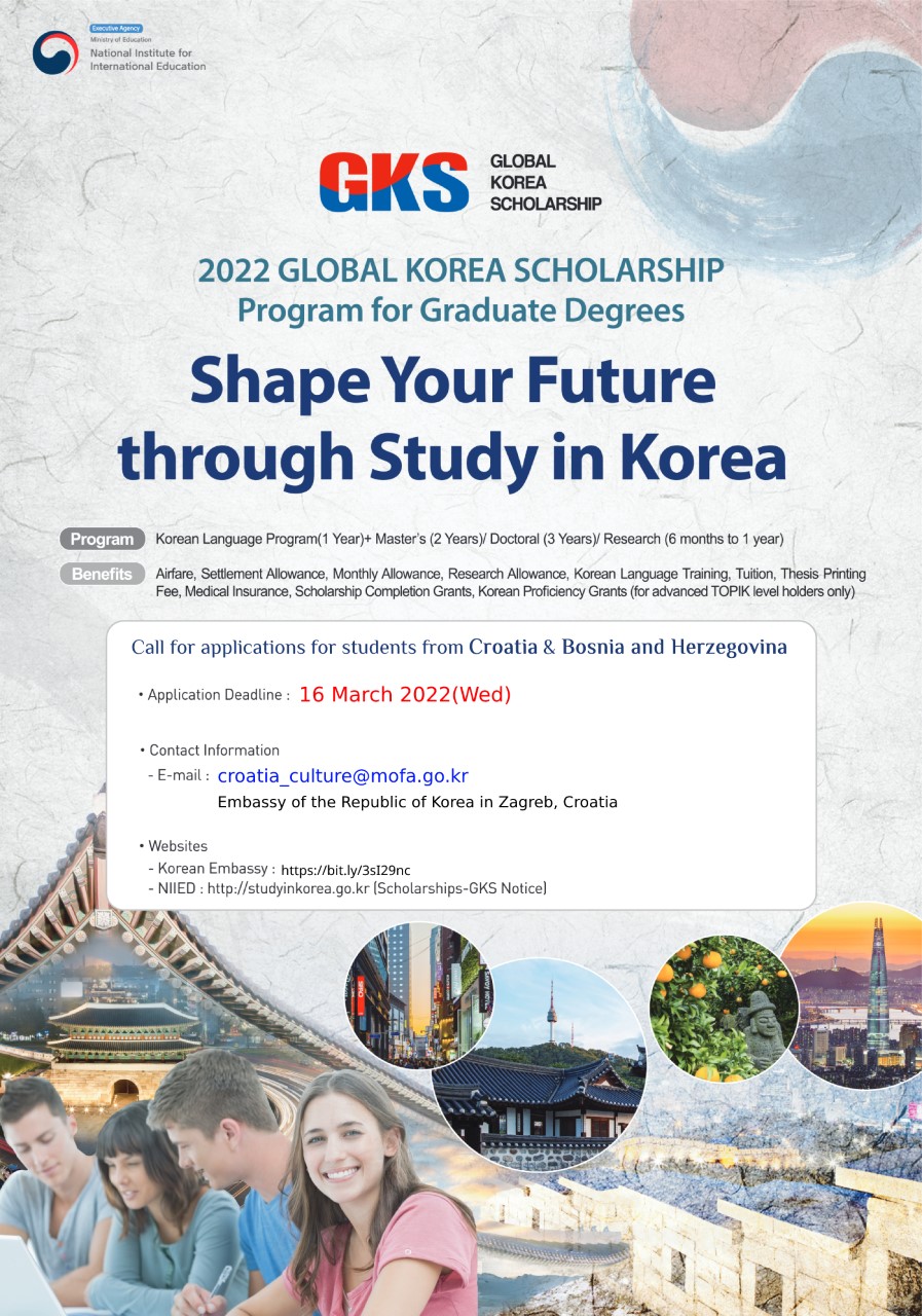 Ambasada Rebublike Koreje je konkurs za stipendije na drugom i trećem ciklusu studija.