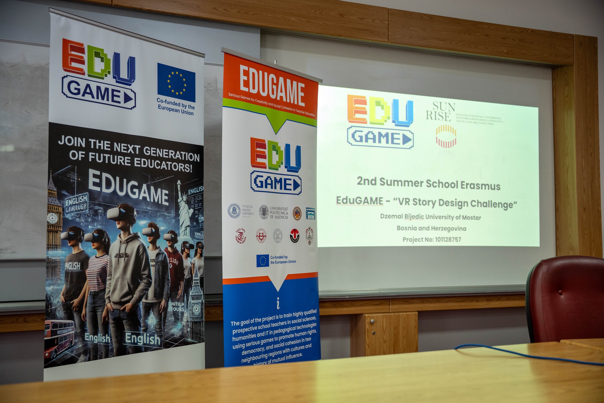 Druga ljetna škola Erasmus+ projekta EduGAME, pod nazivom „VR Story Design Challenge“, okupila je više od 150 studenata iz Bosne i Hercegovine i inostranstva, a održana je od 23. do 27. marta 2026. godine na Univerzitetu „Džemal Bijedić“ u Mostaru.
